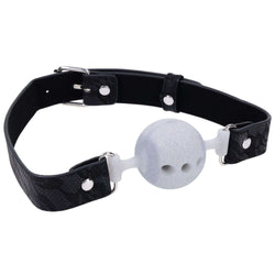 Where silence becomes a sensual surrender. Designed for both comfort and control, the Lace Silicone Breathable Ball Gag features a punctured ball that lets your partner gasp and whimper while indulging in the thrill of restrained pleasure. Lace-etched faux leather straps add a touch of seductive allure, combining elegance with playful resistance. Ideal for extended play, the ventilated design ensures lasting comfort while keeping them entirely at your mercy. The buckle closure secures the fit, allowing your naughty submissive to stay exactly where you want them.